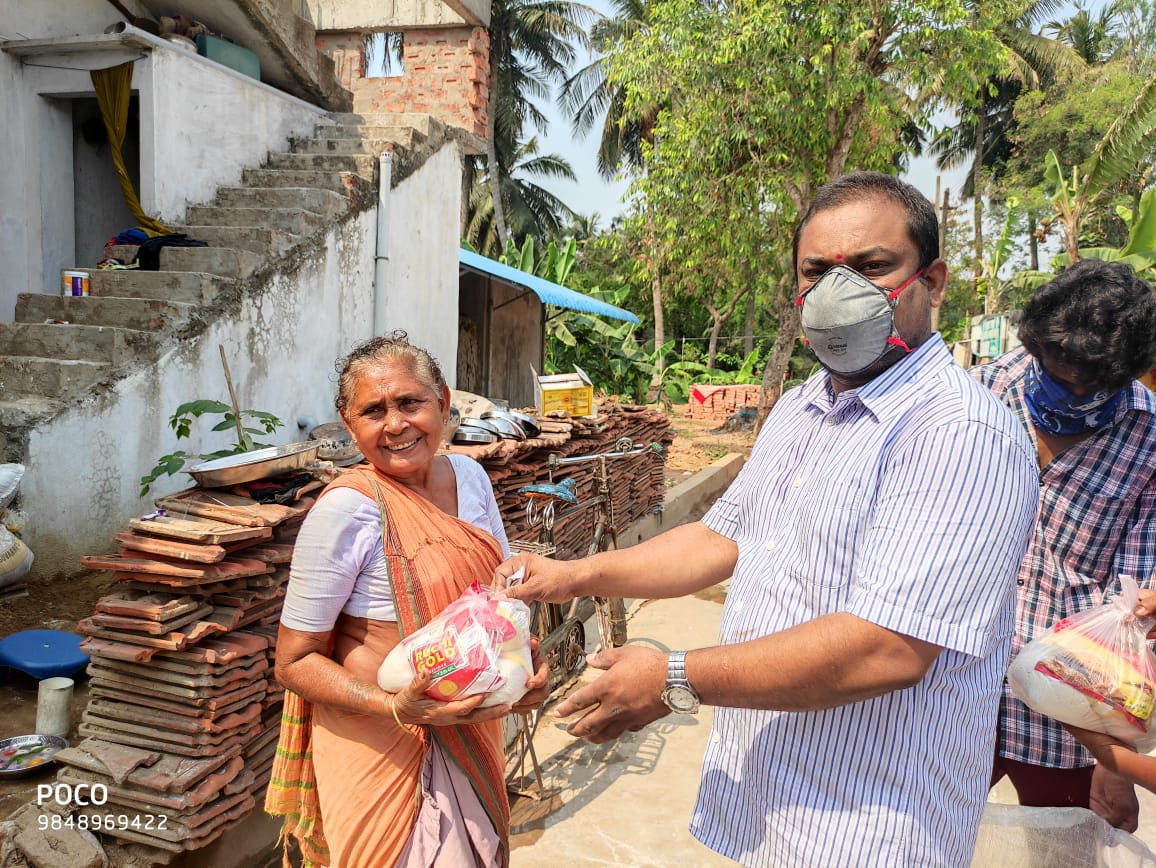 ఎలిశెట్టి నరేష్ ;;పేదలకు నిత్యావసర వస్తువులు పంపిణి